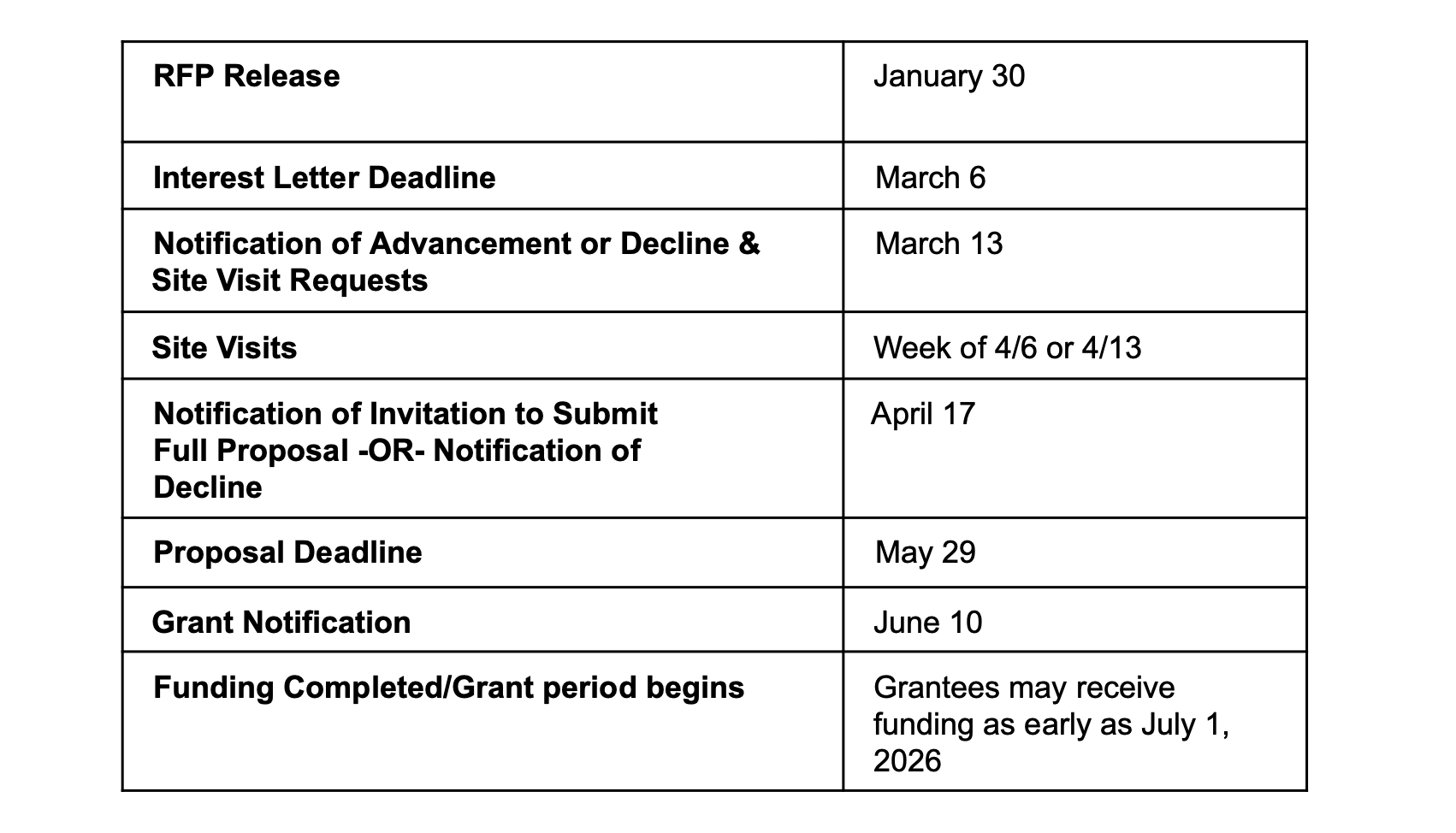 Award Amounts: Awards may range between $10,000–$100,000, depending on scope and scale. Multi-year grant proposals are welcome.